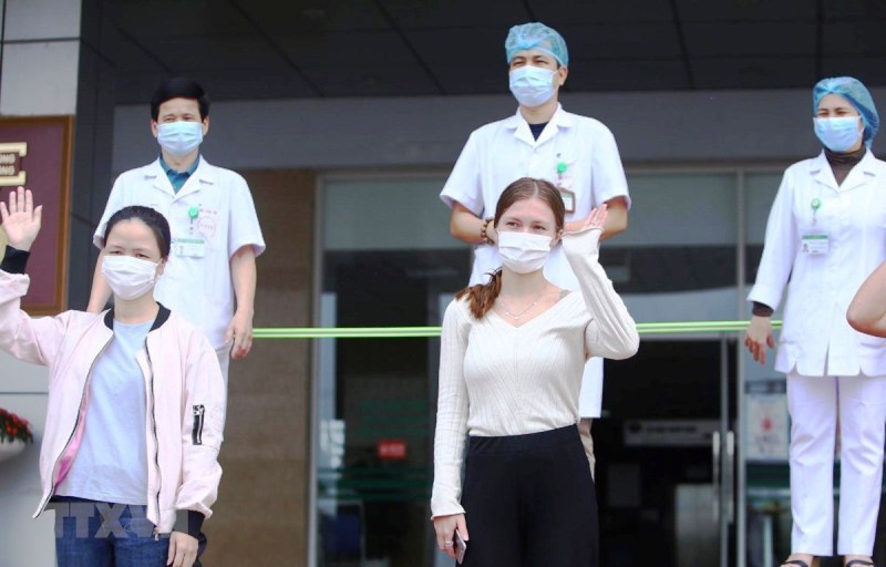 Các bệnh nhân được công bố khỏi bệnh ngày 25/4/2020 - Ảnh: Minh Quyết/TTXVN |