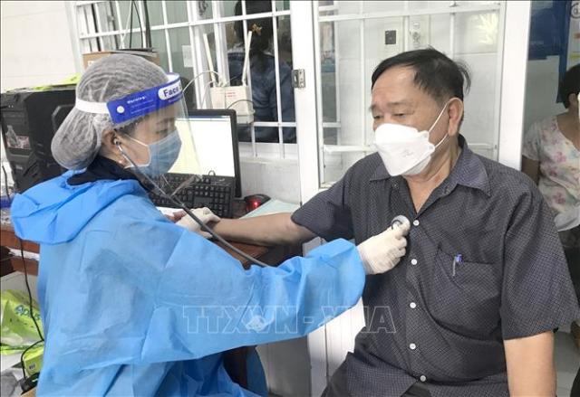 Khám sàng lọc cho người dân trước khi tiêm vaccine mũi 3 tại Vĩnh Long. Nguồn: TTXVN |