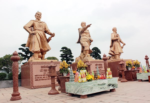 Nổi bật nhất trong khu di tích lịch sử Bạch Đằng Giang là quần thể ba ngôi đền gắn với tên tuổi ba nhà cầm quân lẫy lừng của dân tộc: Vua Lê Đại Hành, Quốc Công Tiết chế Hưng Đạo Vương Trần Quốc Tuấn và Đức Vương Ngô Quyền. Cả ba ngôi đền đều được kiến trúc theo dáng cổ, với sự kết hợp kỳ công giữa gỗ và đá tự nhiên, tọa lạc dưới những vòm cây đang tỏa bóng, dọc theo một triền núi ven sông, tạo thành vùng sinh thái thơ mộng, trên bến dưới thuyền, sơn thủy hữu tình gắn quyện.