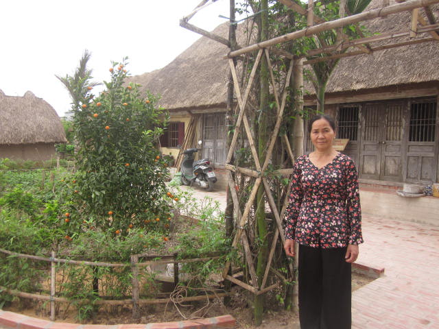 Cô Ngô Thị Khiếu bên khu nhà trung nông