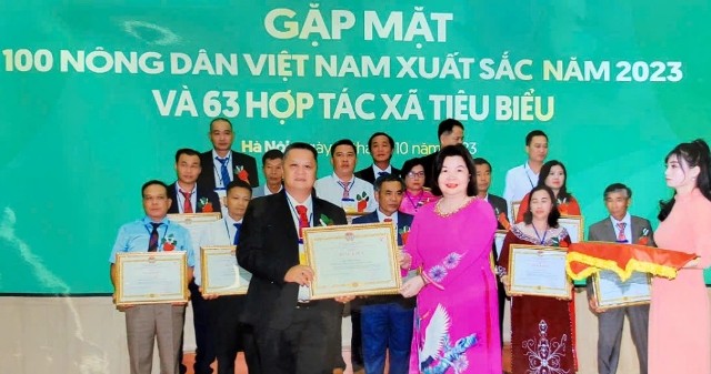 Trung ương Hội Nông dân Việt Nam tặng bằng khen Nông dân Việt Nam xuất sắc 2023 cho ông Châu Minh Hải. Ảnh: VOV