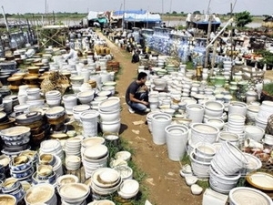 Một góc chợ gốm ven sông Hồng (Ảnh: TTXVN) |