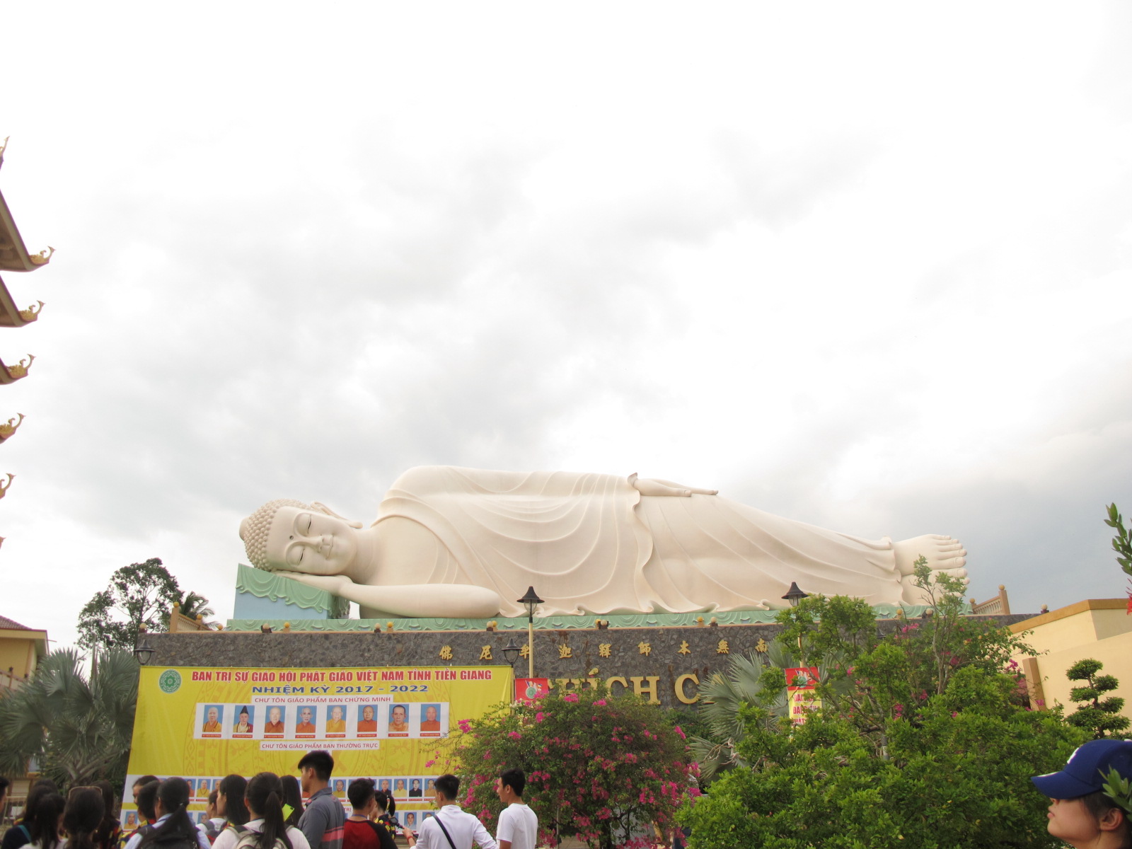 Đến với chùa Vĩnh Tràng, du khách còn được chiêm ngưỡng hơn 60 bức tượng Phật với đường nét đầy tinh tế được làm bằng gỗ, đồng, đất nung. Những bức tượng đồng Quan Âm, Phật Di Đà, Thế Chí được đúc từ thế kỷ 19, đi kèm với bảy bộ bao lam in hình Bát Tiên, Mặt Trăng và Mặt Trời. Đây được coi là bảo vật vô giá của Vĩnh Tràng tự. Đặc biệt, trong khuôn viên Chùa còn có bức tượng Phật Di Lặc cao 24m nổi bật trên nền trời tạo cảm giác yên lành, thanh thản cho du khách. Chị Nguyễn Thị Ngọc Phước, hướng dẫn viên du lịch tại chùa Vĩnh Tràng bổ sung thêm: