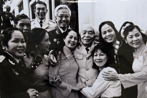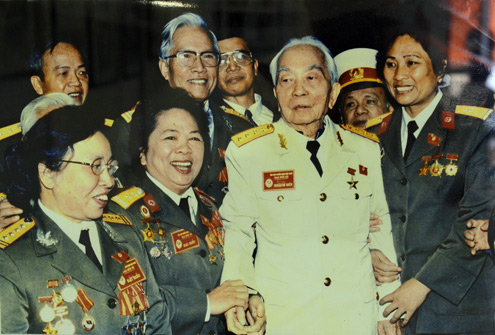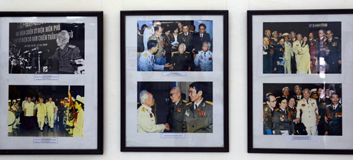 Những ánh mắt, nụ cười, cái bắt tay, cử chỉ ôm hôn thắm thiết của Đại tướng Võ Nguyên Giáp khiến nhiều cựu binh xúc động. 102 bức ảnh được trưng bày nhân dịp sinh nhật lần thứ 102 của ông.