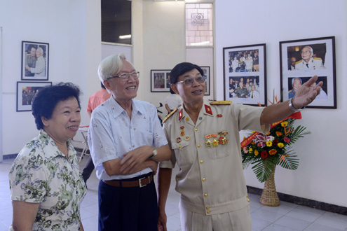 | "Hơn 500 lần bấm máy là hơn 500 cảm xúc khác nhau khi chụp Đại tướng. Nhiều lần bấm máy tôi còn run tay", tác giả Nguyễn Trọng Nghị (ngoài cùng bên phải) chia sẻ và cho biết, triển lãm kéo dài đến hết ngày 26/8 và toàn bộ số ảnh sẽ được gửi tặng cho Bảo tàng Trường Sơn, Bảo tàng Lịch sử quân sự Việt Nam và những người có mặt trong tác phẩm. |