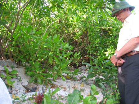 | Anh Trần Hữu Quê bên ngôi mộ của một liệt sĩ hải quân còn rất trẻ |