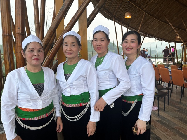 Chị Thu Hương( ngoài cùng bên phải) chủ nhân của Homestay An Khang cùng các chị em trong đội văn nghệ |