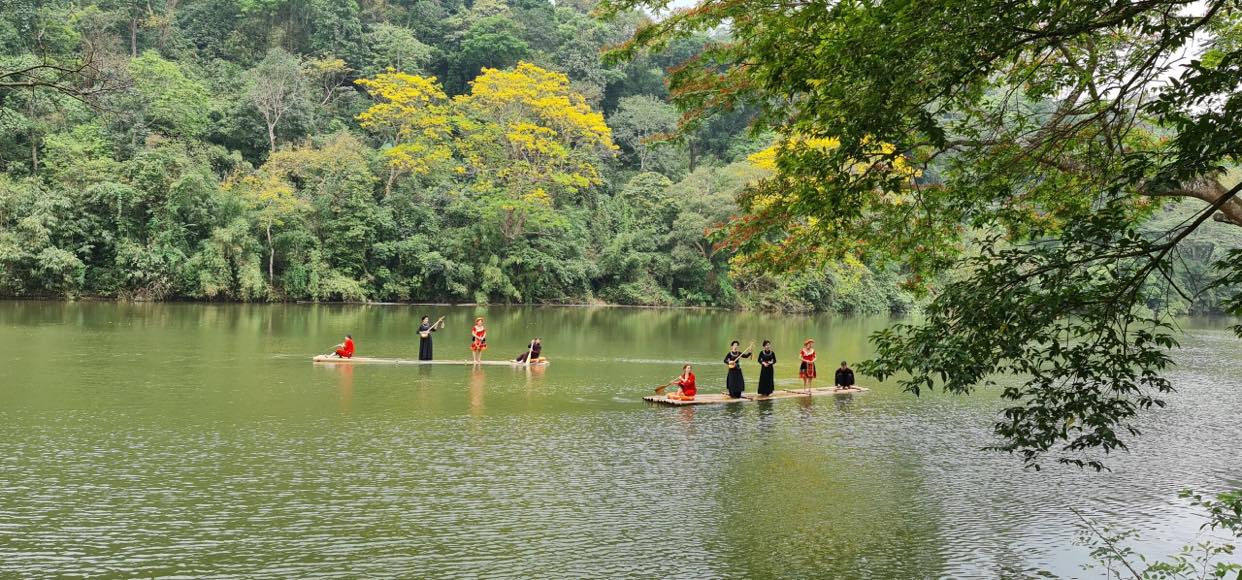 Đến thăm Tuyên Quang, du khách sẽ rất thích thú khi được trải nghiệm bè nổi trên hồ |