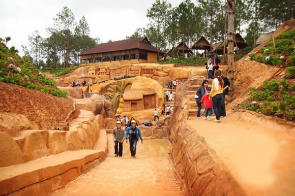 Các công trình kiến trúc, cảnh quan Đà Lạt bằng đất sét nổi bật giữa rừng thông xanh mát thơ mộng bên hồ Tuyền Lâm. Ấn tượng đầu tiên về công trình này phải kể đến là con đường hầm lộ thiên với nhiều tác phẩm điêu khắc chạy dọc hai bên vách. Công trình này được tạo nên dựa trên ý tưởng là tái hiện Đà Lạt từ thuở sơ khai tới khi phát triển thành một vùng đất hiện đại cùng những công trình kiến trúc, văn hóa độc đáo của thành phố này. Chủ nhân của đường hầm đất sét là anh Trịnh Bá Dũng, người có niềm đam mê lớn với những công trình kiến trúc cổ ở Đà Lạt. Sau bốn năm nghiên cứu, anh Dũng tìm ra công thức biến đất sét bazan thành một chất liệu mới có màu sắc độc đáo, thân thiện với môi trường để dựng lên đường hầm và các tác phẩm điêu khắc bằng chất liệu đất sét có độ bền tương đương với bêtông: Tôi quyết định chọn Đà lạt làm du lịch mà muốn vậy phải chọn sản phẩm rất đặc biệt. Tôi có may mắn đi nhiều nước trên thế giới và mỗi nước có cách làm du lịch khác nhau. Khi tôi dừng lại ở vườn hoa ở Hà Lan tôi thán phục họ vì chỉ sử dụng một loại hoa tuylip để làm du lịch, đó là đặc sản của họ và rất thành công. Khi về Đà Lạt tôi gặp phiền toái nhất là đất đỏ, mưa bị lầy, đi xe hay bị té. Biệt thự xây xung quanh rất đẹp nhưng xung quanh nó là màu đỏ thì tôi bất chợt nghĩ đây cũng là một sản phẩm, một đặc sản. Với kinh nghiệm và kiến thức, tôi đã nghiên cứu thành công với công nghệ này và xem đất đỏ là đặc sản và tôi đã làm được căn nhà bằng đất đỏ và đường hầm điêu khắc.