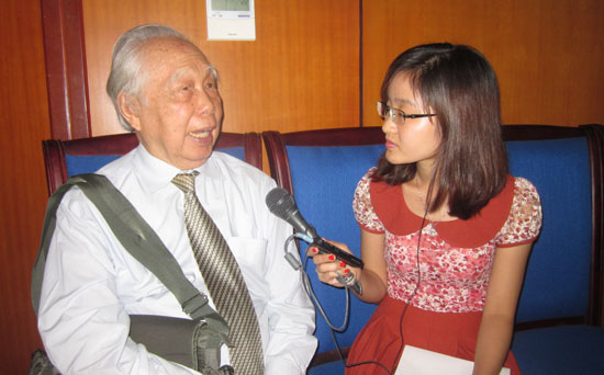 | Nhà báo lão thành Phan Quang chia sẻ kinh nghiệm với phóng viên trẻ của VOV |