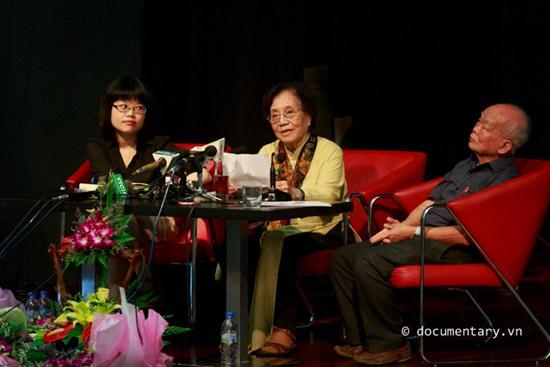 Bà Nguyễn Thị Bình và nhà văn Nguyên Ngọc tại buổi giới thiệu sách