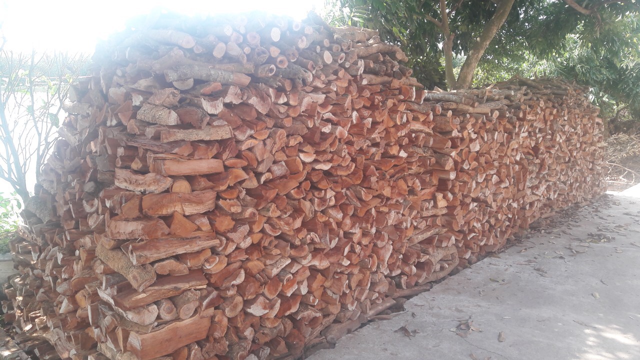 Gỗ nhãn được chuẩn bị để kho cá. Người dân Nhân Hậu kho cá bằng củi nhãn, vừa đảm bảo nhiệt lượng, vừa giữ được hương vị của cá. |