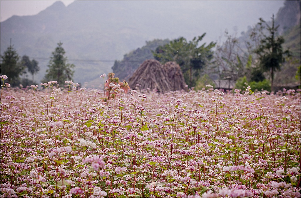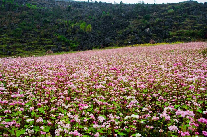 Hoa tam giác mạch nở rộ vào tháng 10, tháng 11. Đến Hà Giang chỉ thấy những cao nguyên đá sừng sững được trang trí bằng bạt ngàn những cánh rừng tam giác mạch, khiến không gian nơi đây thêm thơ mộng, trữ tình, níu chân du khách. Trong cả một vùng không gian trải dài 4 huyện vùng cao từ Quản Bạ, Yên Minh, Mèo Vạc, Đồng văn, quanh co dưới chân núi cao đâu đâu cũng thấy rực rỡ màu phớt hồng của hoa tam giác mạch. Chị Mai Hương, du khách từ Hà Nội lên cho biết trước đây chỉ biết đến Hà Giang với cao nguyên đá, cột cờ Lũng Cú, dinh nhà họ Vương, đỉnh Mã Pí Lèng huyền thoại và con đường hạnh phúc. Nay đến Hà Giang ai cũng phải ngỡ ngàng trước vẻ đẹp của hoa tam giác mạch: “Khi bạn đến với Hà Giang bạn sẽ có cảm nhận vô cùng ấn tượng và vô cùng khâm phục con người nơi đây. Xung quanh chỉ có những dãy núi đá tai mèo và xen vào đó là những bạt ngô, để thấy được người dân nơi đây vượt qua cái nghèo cái khó khăn để tồn tại. Và xen lẫn giữa những núi đá tai mèo có những vạt đất bằng phẳng người dân đã trồng hoa tam giác mạch. Giữa một bên là núi đá tai mèo, một bên là cánh đồng hoa, các bạn sẽ thấy ấn tượng và thú vị trước cảnh quan đó. Một không gian vô cùng lãng mạn trên sự khắc nghiệt đó để thấy thiên nhiên và sự sống vẫn tồn tại ở nơi đây.”