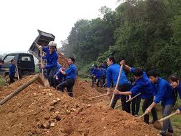 Thanh niên tham gia làm đường - tuoitrethanhhoa.vn