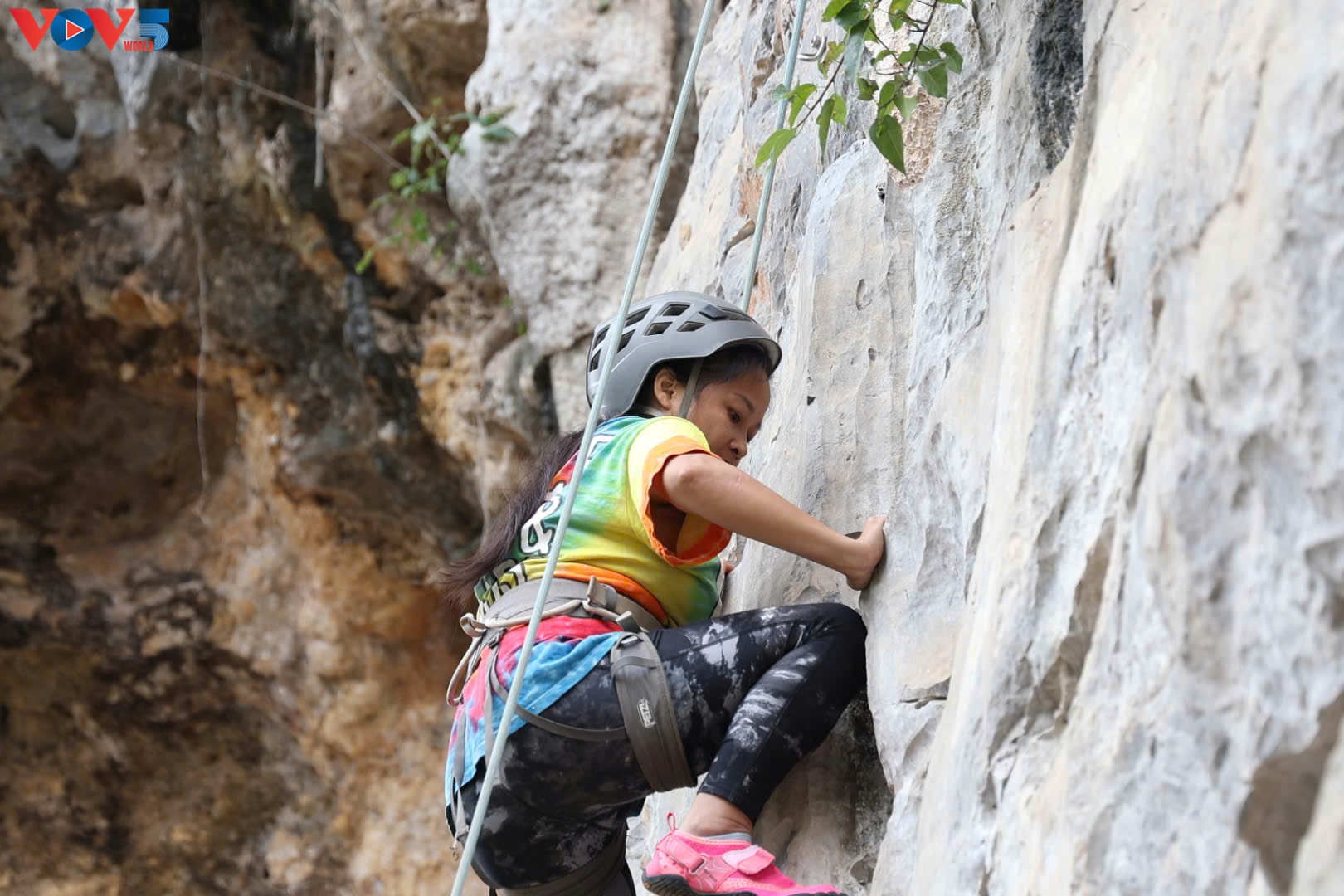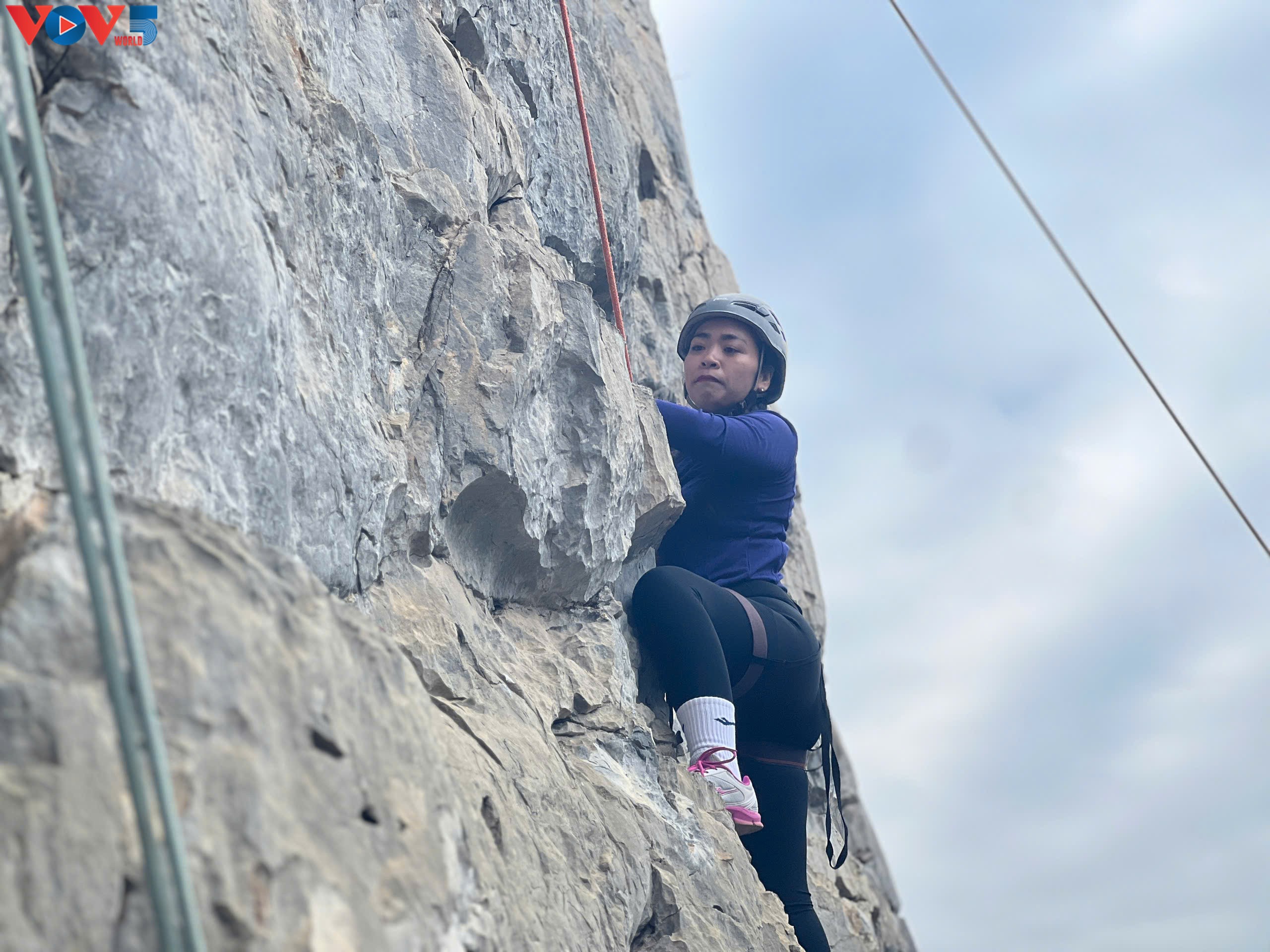 Ngày càng có nhiều bạn nữ đam mê môn thể thao leo núi. |