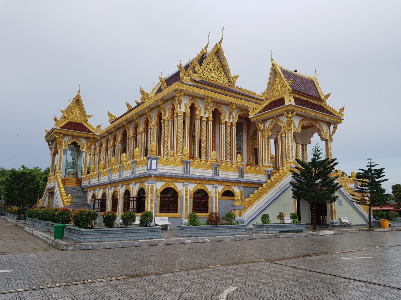 Bất cứ ai khi bước vào chùa đều choáng ngợp trước vẻ đẹp của chính điện, được xây dựng đồ sộ, nguy nga lộng lẫy như một cung điện. Mỗi khoảng trống của chính điện đều được tận dụng chế tác ra những hoa văn, hình tượng các con vật cực kỳ đẹp mắt. Trên đỉnh mỗi cột trong chính điện đều gắn tượng Krud (người chim), một nửa thân là chim, nửa là người hoặc là tiên nữ. Đi dọc theo dãy hành lang của chánh điện là những hàng cột dày đặc mà mỗi đầu cột đều có gắn tượng Krud trong tư thế đứng dang hai tay đỡ mái, trông rất khỏe khoắn, sinh động, thể hiện đậm chất kiến trúc điêu khắc truyền thống của bà con Khmer Nam Bộ.