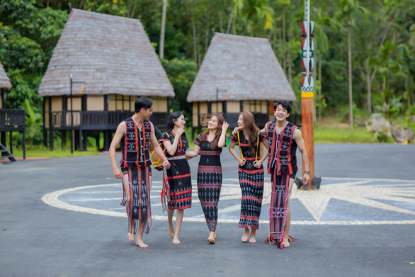 Các bạn trẻ thích thú khoác trên mình trang phục Cơ Tu |