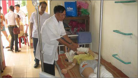 Ông Thoàn bảo chúng tôi chút nữa các anh nên ra Trạm y tế xã tìm hiểu và phỏng vấn thêm một số bệnh nhân ở xa nhưng bị bỏng rất nặng mới về. Do ở nhà chật quá nên tôi nhờ chính quyền địa phương tạo điều kiện đặt gần chục giường bệnh ở đó.