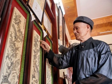 Đến thăm nghệ nhân Nguyễn Hữu Sam, năm nay hơn 80 tuổi, ngôi nhà của ông đã trở thành nơi trưng bày hàng ngàn bức tranh Đông Hồ cùng những bản khắc hàng trăm năm tuổi. Ngoài ra, để du khách tìm hiểu về các công đoạn làm tranh, ông Sam còn cho xây dựng một không gian miêu tả cách làm tranh Đông Hồ, từ làm màu, phơi giấy, in tranh… Ông Nguyễn Hữu Sam cho biết: “Tranh Đông Hồ ngày xưa được cha ông chơi trong dịp Tết vì nhà cửa đón Xuân sẽ đẹp và có không khí đón Tết hơn nếu có tranh Đông Hồ. Người xưa có câu: Bánh chưng xanh, thịt mỡ dưa hành câu đối đỏ và nếu ngày Tết thiếu đi bức tranh làng Hồ thì ngôi nhà cũng trống trải”.