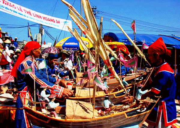 | Nghi thức rước thuyền trong lễ khao lề thế lính Hoàng Sa ở huyện đảo Lý Sơn |