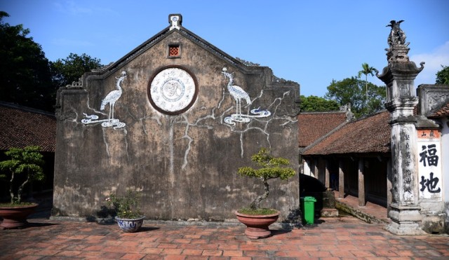 Ấn tượng đầu tiên của du khách từ cổng vào là hệ thống tường đất bao quanh khu nội tự chùa. Các bức tường rào được xây dựng bằng đất sỏi son, theo lối tường trình, độ cao từ 1,8-5 mét. Trên đỉnh tường được che bằng các mảnh gốm, chum, vại vỡ của Thổ Hà. Trải qua thời gian, các bức tường đất không hề bị nứt lở, đứt gãy hay bị nghiêng. Sắc màu rêu phong càng làm tăng thêm vẻ cổ kính, linh khí. Dưới tán cây đề, cây vối cổ thụ hàng nghìn năm tuổi, du khách như lạc vào cảnh tiên thanh mát, bình yên an lành đến lạ kỳ.