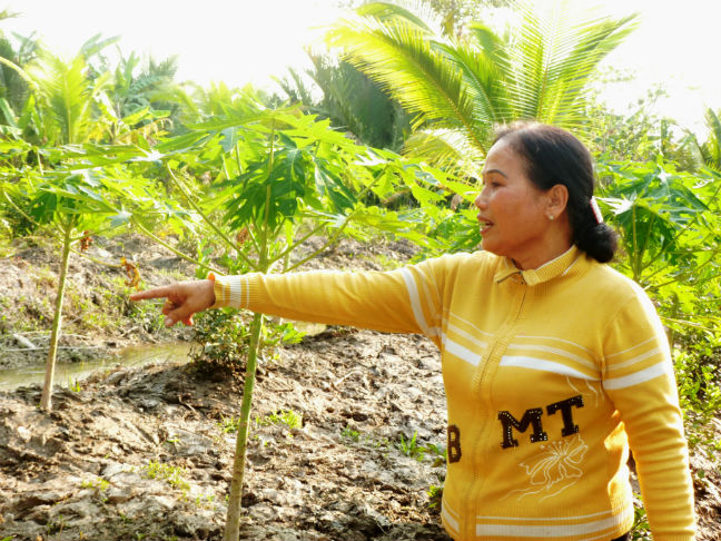 Bà Phan Thị Tuyết Mai bên vườn nhà