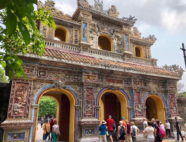 Theo tư vấn của đội ngũ lễ tân, chúng tôi đi theo tua du lịch do khách sạn đặt và sắp xếp. Tất cả những di tích lịch sử vốn chỉ được xem qua màn ảnh nhỏ của thành phố lần lượt hiện ra khá chi tiết trong giới thiệu của người hướng dẫn viên. Những du khách đến từ Anh, Pháp, Đức và Austria đi cùng chúng tôi đã đi từ hết ngỡ ngàng này sang bất ngờ khác bởi họ đang được đi trên miền đất đầy ắp những biến cố lịch sử của một thời vàng son nước Việt. Trong mơn man gió từ sông Hương, chúng tôi ngắm những con đò xuôi ngược qua cầu Tràng Tiền trong hoàng hôn tĩnh lặng. Huế có điểm giao thời giữa chiều và tối. Khoảng thời gian ấy những người bán đồ ăn cho bữa tối mới đang chuẩn bị và khách hàng vẫn chưa tới đông. Khoảng lặng ấy đã làm cho khách bộ hành dọc bờ sông được hòa mình với không gian của thiên nhiên, được cảm nhận hết vẻ dung dị nhưng đầy chất thơ của dòng sông vốn là cảm hứng cho rất nhiều bài thơ và bản tình ca bất hủ.