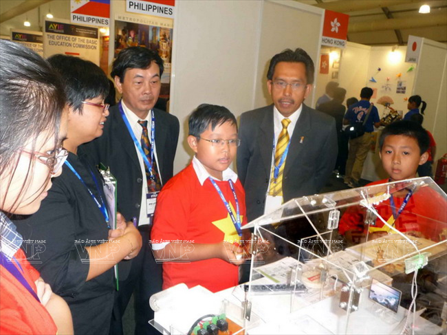 | Nguyễn Dương Kim Hảo thuyết trình mô hình “Bảng điều khiển thông minh” tại Triển lãm quốc tế "Sáng tạo Khoa học Công nghệ Trẻ lần thứ IX" tại Malaysia. Ảnh: vnanet.vn |