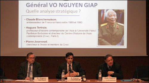 (VOV5) - «Con người Đại tướng Võ Nguyên Giáp được miêu tả như một huyền thoại ngay khi ông còn sống». Đó là nhận định của các chuyên gia quân sự- chính trị- ngoại giao Pháp tại hội thảo khoa học với tên gọi «Đại tướng Võ Nguyên Giáp – Phân tích chiến lược» diễn ra hôm 14/11 tại Viện nghiên cứu chiến lược thuộc Trường quân sự - Bộ quốc phòng Pháp.