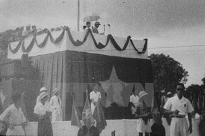Đúng 2 giờ chiều, Chủ tịch Hồ Chí Minh bước lên lễ đài với tư cách là Chủ tịch Chính phủ Lâm thời. Trước toàn thể quốc dân đồng bào và nhân dân thế giới, Chủ tịch Hồ Chí Minh đã trịnh trọng tuyên bố: “Nước Việt Nam có quyền được hưởng tự do và độc lập và sự thật đã trở thành một nước tự do và độc lập. Toàn thể dân tộc Việt Nam quyết đem tất cả tinh thần và lực lượng, tính mạng và của cải để giữ vững quyền tự do và độc lập ấy”.