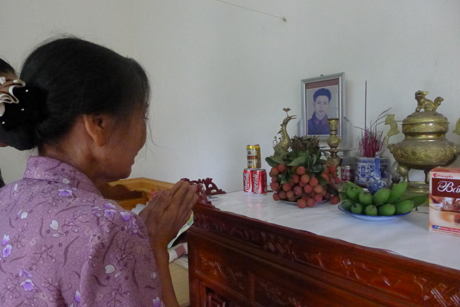 Nói đến đây bà nghẹn ngào "anh bị thương, cụt chân, cụt tay cũng được, chỉ cần anh trở về đúng là chồng mình. Nhưng muốn thế đâu có được, kỷ vật hiện chỉ còn lá thư anh viết trước khi hy sinh và tấm di ảnh trên bàn thờ. Lúc cưới chúng tôi cũng chẳng có tấm ảnh nào. Về tết bảo chụp để lúc nào nhớ có tấm hình của anh nhưng anh cũng không chụp. Đến lúc trên đường đi anh thư về nói rằng hay tách tấm hình của anh chụp cùng các bạn lớp 10, gửi ảnh đó về nên giờ có ảnh thờ này"