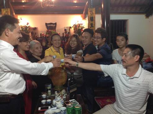 Nhà cụ Các có 5 người con thì có đến 4 người công tác và sinh sống ở Hà Nội nên khi tết đến, đó là dịp được trở về. Ông Nguyễn Văn Phong, con trai thứ của cụ Các, bảo rằng chỉ khi về quê đón tết cùng người thân, ăn bữa cơm gia đình, đi thăm hỏi bà con làng trên xóm dưới mới thực sự thấy tết có ý nghĩa: Không khí tết ở quê vui và đầm ấm. Hơn 20 năm ở Hà Nội nhưng năm nào cũng về quê. Cơ bản anh em đi làm xa quê, tết được gặp nhau có tình cảm, san sẻ, chuyện trò rất vui. Năm nào cũng đưa các cháu về quê, chúng rất vui vì về quê rộng rãi thoải mái và được gặp bà con họ hàng.