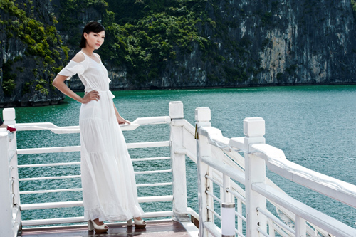 Bộ ảnh với chủ đề “White Summer” của các thí sinh đã được nhiếp ảnh gia Phạm Hoài Nam thực hiện trên du thuyền 5 sao Âu Cơ Vịnh Hạ Long.