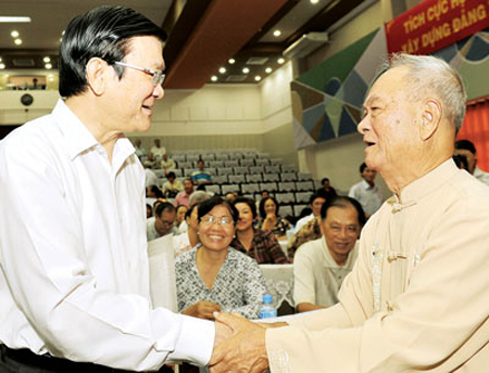 Chủ tịch nước Trương Tấn Sang tiếp xúc cử tri quận 4, TPHCM tháng 6-2012. Ảnh: Việt Dũng. |