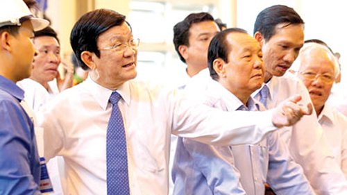 Chủ tịch nước Trương Tấn Sang thăm công trình xử lý nước thải thuộc dự án cải thiện vệ sinh môi trường nước lưu vực Nhiêu Lộc - Thị Nghè. Ảnh Giản Thanh Sơn. |