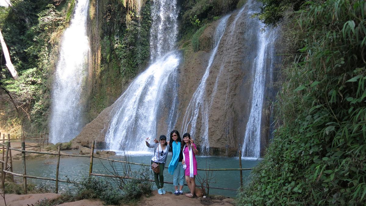 Du khách thích thú chụp ảnh lưu niệm bên dòng thác