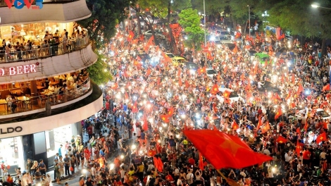 Cổ động viên Hà Nội tưng bừng đón mừng chiến thắng