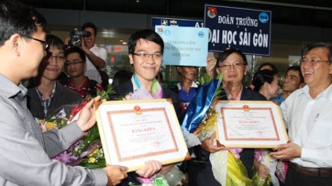 Chiều 12/6, nhà vô địch thế giới cờ chớp Lê Quang Liêm đã về đến sân bay Tân Sơn Nhất và được nhiều cổ động viên cùng lãnh đạo Liên đoàn cờ TP HCM chào đón.