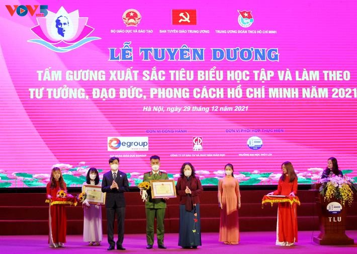Ngày 29/12, Bộ Giáo dục và Đào tạo phối hợp với Ban Tuyên giáo Trung ương, Trung ương Đoàn TNCS HCM tổ chức Lễ Tuyên dương tấm gương xuất sắc, tiêu biểu học tập và làm theo tư tưởng, đạo đức, phong cách Hồ Chí Minh năm 2021.