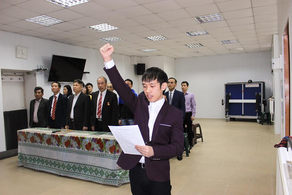 Đảng viên Lê Cao Cường đọc lời thề sau khi nhận quyết định kết nạp