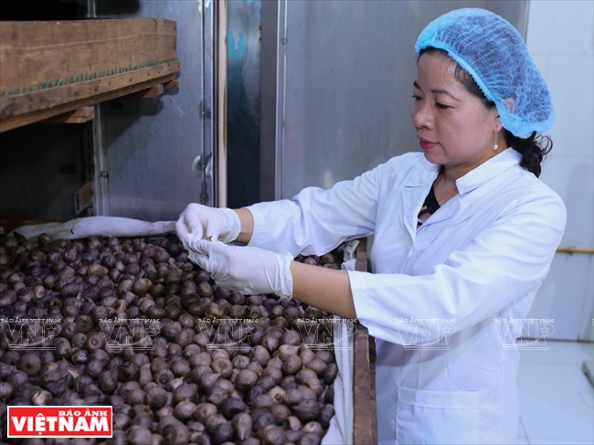 Thạc sỹ Bá Thị Châm tại xưởng sản xuất tỏi đen. Ảnh:vietnam.vnanet.vn |