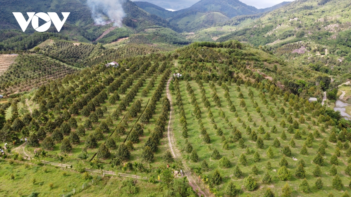 Những vườn sầu riêng được chuyển đổi canh tác hữu cơ tại huyện miền núi Khánh Sơn - Ảnh: VOV