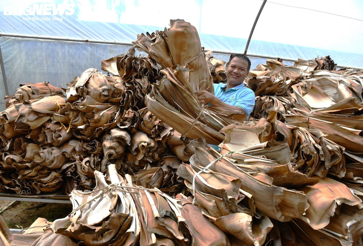 Nguyễn Văn Tuyến đã trăn trở trong một thời gian dài để nghĩ cách biến mo cau thành những sản phẩm có ích. Ảnh: VTC News