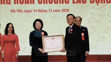 (VOV5) - Phó Chủ tịch nước Đặng Thị Ngọc Thịnh đã trao Huân chương Độc lập hạng Nhì tặng tập thể Trường THPT Huỳnh Thúc Kháng vì đã có thành tích xuất sắc trong công tác giảng dạy và học tập.