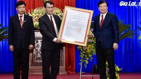 (VOV5) - Phó Thủ tướng Trịnh Đình Dũng khẳng định việc được công nhận là đô thị loại I trực thuộc tỉnh là điều kiện thuận lợi để thành phố Pleiku phát triển kinh tế-xã hội
