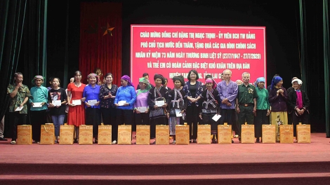 (VOV5) - Phó Chủ tịch nước trao 60 suất quà cho 30 hộ gia đình chính sách và 30 cháu học sinh có hoàn cảnh khó khăn tại huyện Tam Đường.