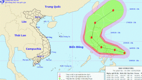 (VOV5) - Đến 13 giờ ngày 15/5, bão di chuyển theo hướng Tây Bắc trên khu vực đất liền Philipin. Đến 13 giờ ngày 18/5, bão di chuyển theo hướng Bắc.