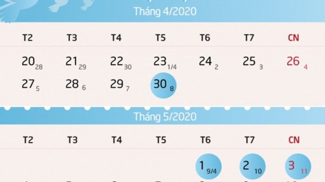(VOV5) - Ngày Tết Độc lập 30/4 và ngày Quốc tế lao động 1/5 rơi vào thứ năm, thứ sáu nên người lao động sẽ nghỉ hai ngày này, cộng với hai ngày cuối tuần 2-3/5.