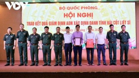 (VOV5) - Sáng 26/7, tại Hà Nội, Bộ Quốc phòng phối hợp với các cơ quan, ban, bộ, ngành Trung ương tổ chức trao kết quả giám định ADN xác định danh tính các liệt sĩ cho các thân nhân, gia đình liệt sĩ.