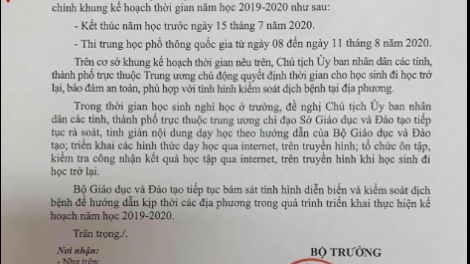 Bộ Giáo dục và Đào tạo điều chỉnh lần 2 khung kế hoạch thời gian năm học 2019-2020
